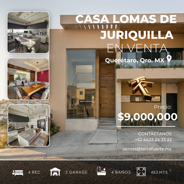 📍 Ubicación Premium: Ubicada en Lomas de Juriquilla, Querétaro. Una de las zonas de mayor crecimiento, exclusividad y plusvalía en la ciudad, rodeada de servicios de primer nivel.